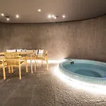 Guests at this hotel can enjoy a unique dining environment. The living room area is designed with modern furniture, including a coffee/tea table, armchairs, and a soft couch, creating a perfect setting for relaxation. The onsite bar serves a variety of drinks, catering to guests' preferences in a welcoming atmosphere.
